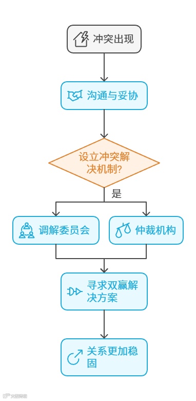 管理中,需要设立冲突解决机制,如调解委员会、仲裁机构等,及时化解团队内部的冲突和矛盾。