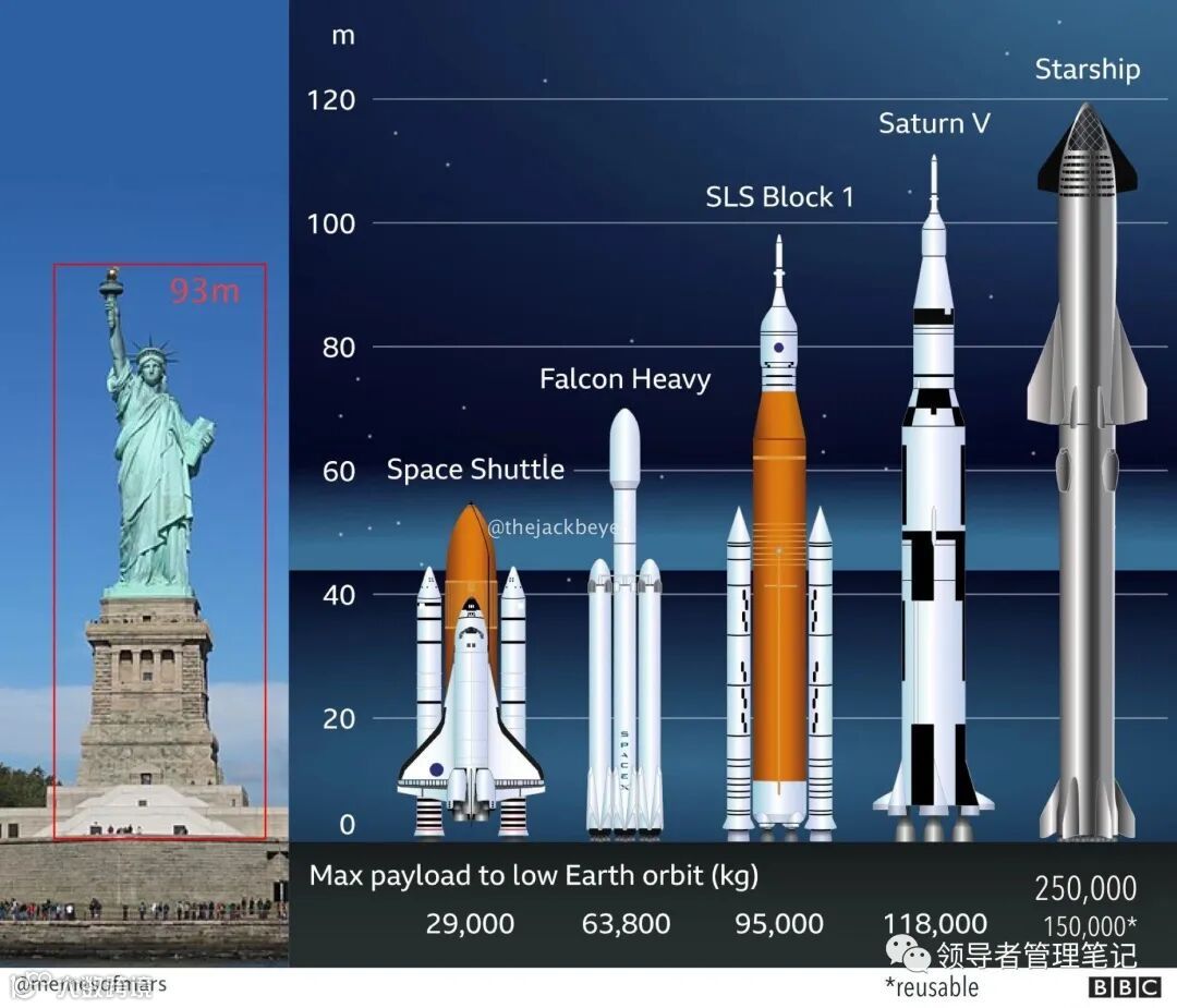 为了进一步降低发射成本,SpaceX 正在建造名为 Starship(星舰) 的下一代火箭。这个东西特别大。该运载火箭由两部分组成,分别是 Super Heavy(超重型)助推火箭(第一级)以及叫做 Starship(第二级)的航天器。