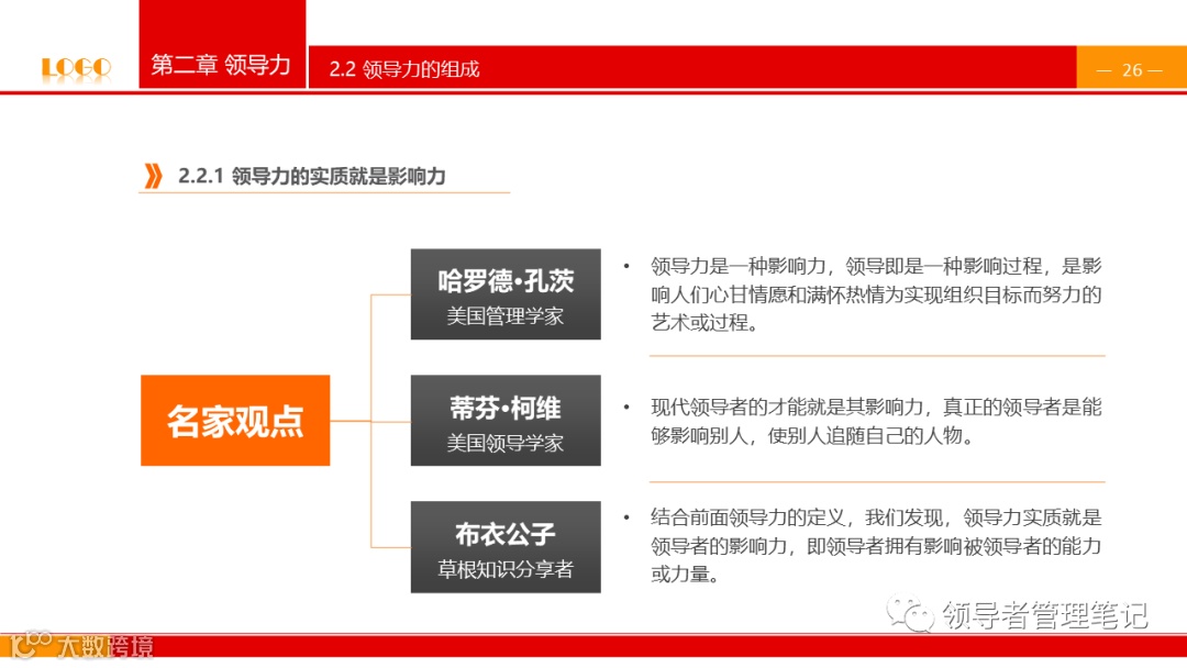 根据领导力的定义,我们会看到它存在于我们周围,在管理层,在课堂,在球场,在政府,在军队,在上市跨国公司,在小公司直到一个小家庭,我们可以在各个层次,各个领域看到领导力,它是我们做好每一件事的核心。