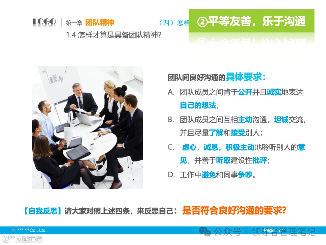 - 平等友善,乐于沟通:保持良好的沟通,分享信息,避免误解和冲突。
