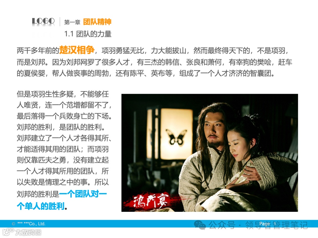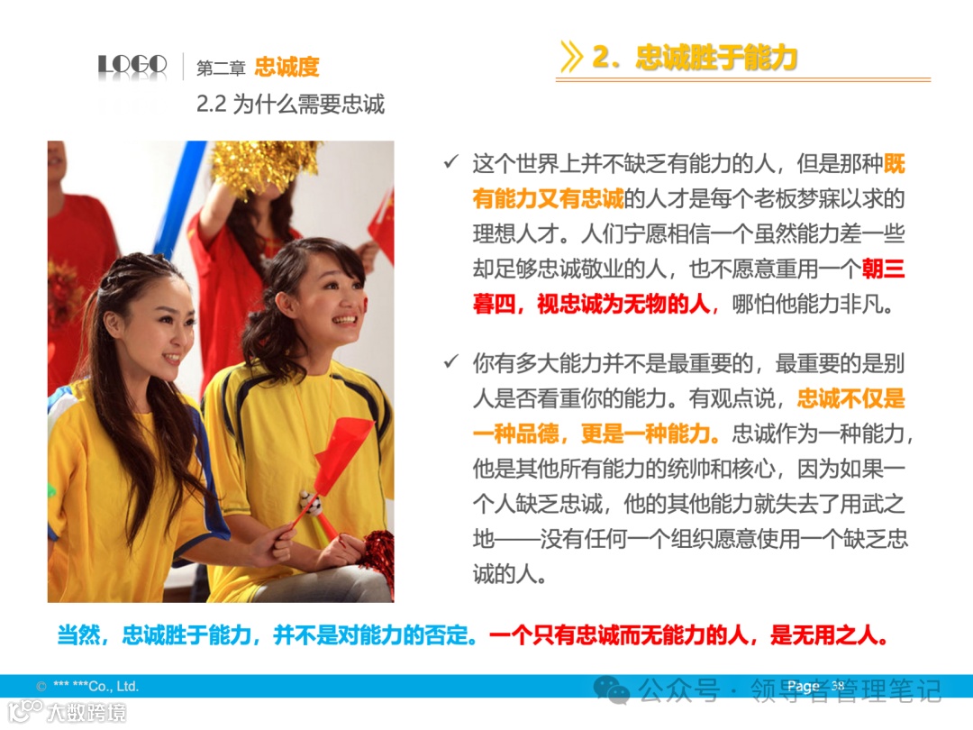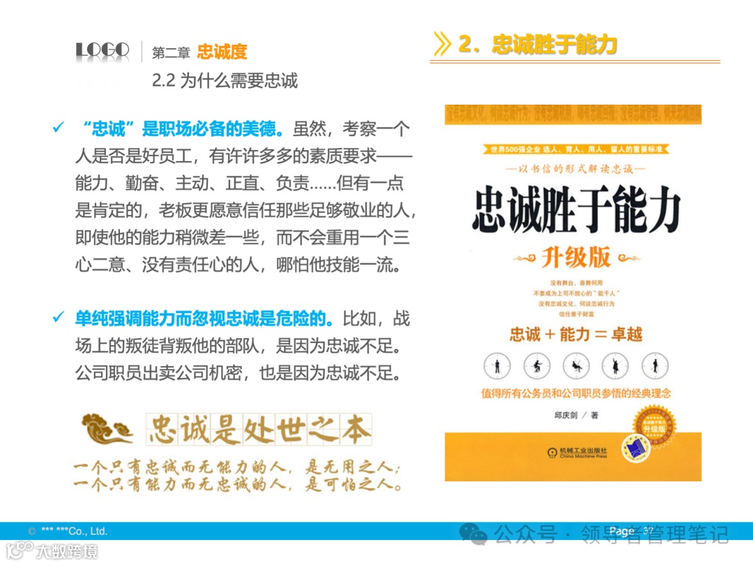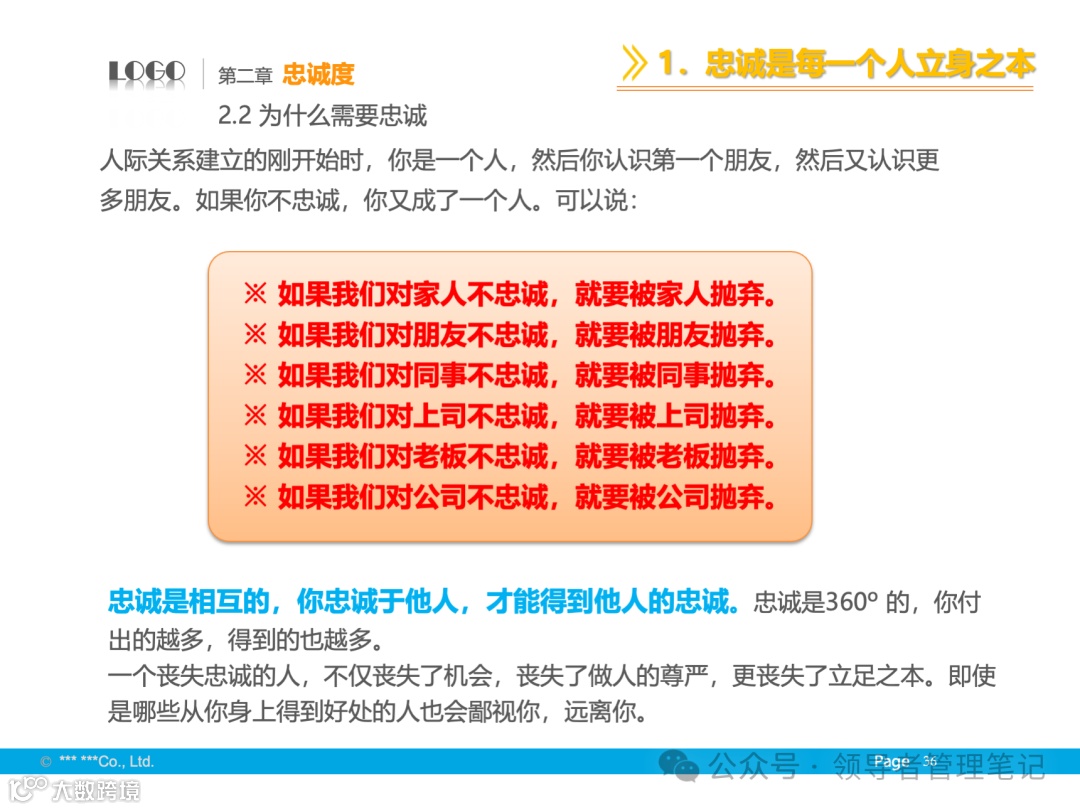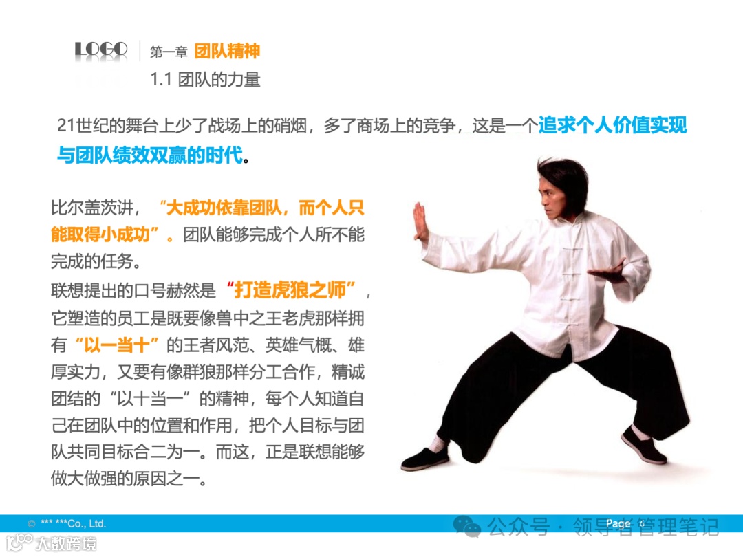 - 基础与境界:尊重个人成就,发挥个性特长,追求全体成员的向心力、凝聚力,保证组织高效运转。