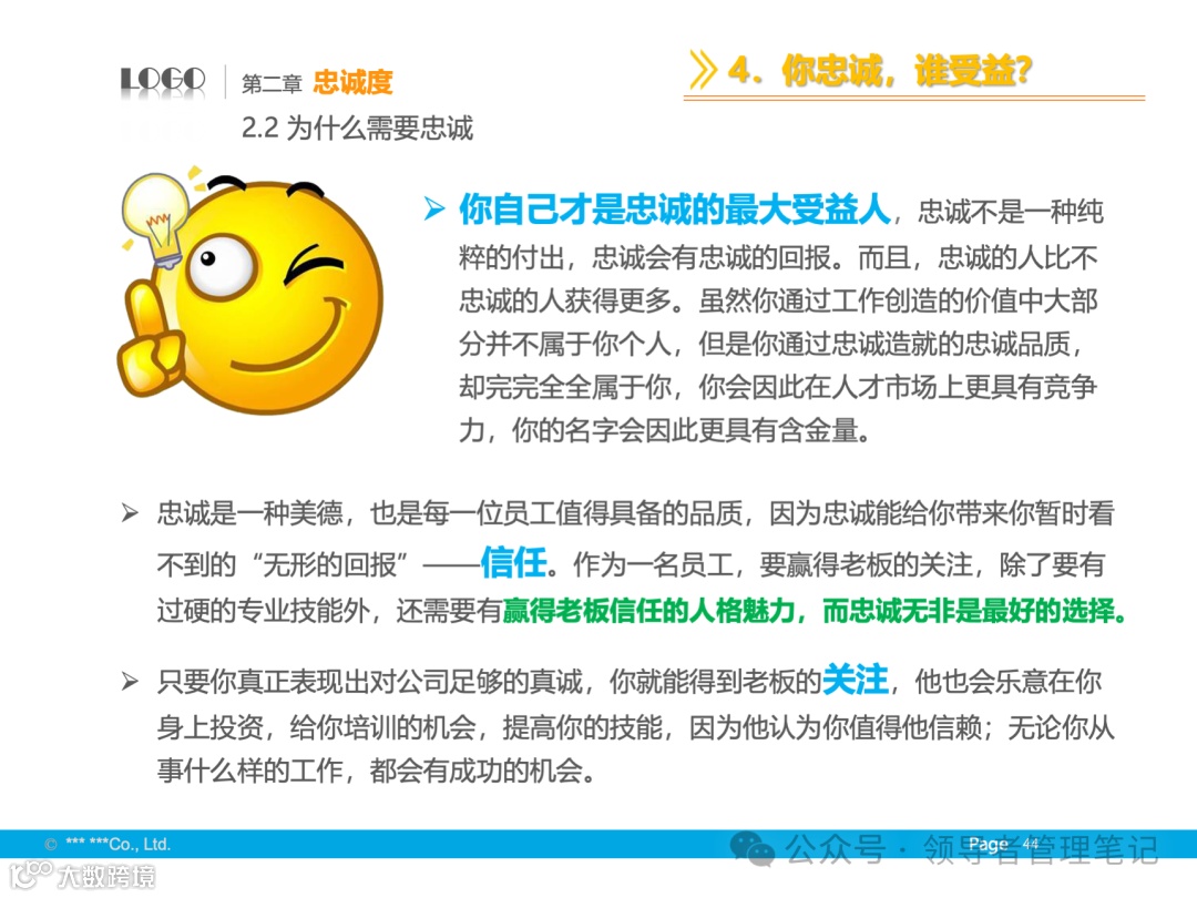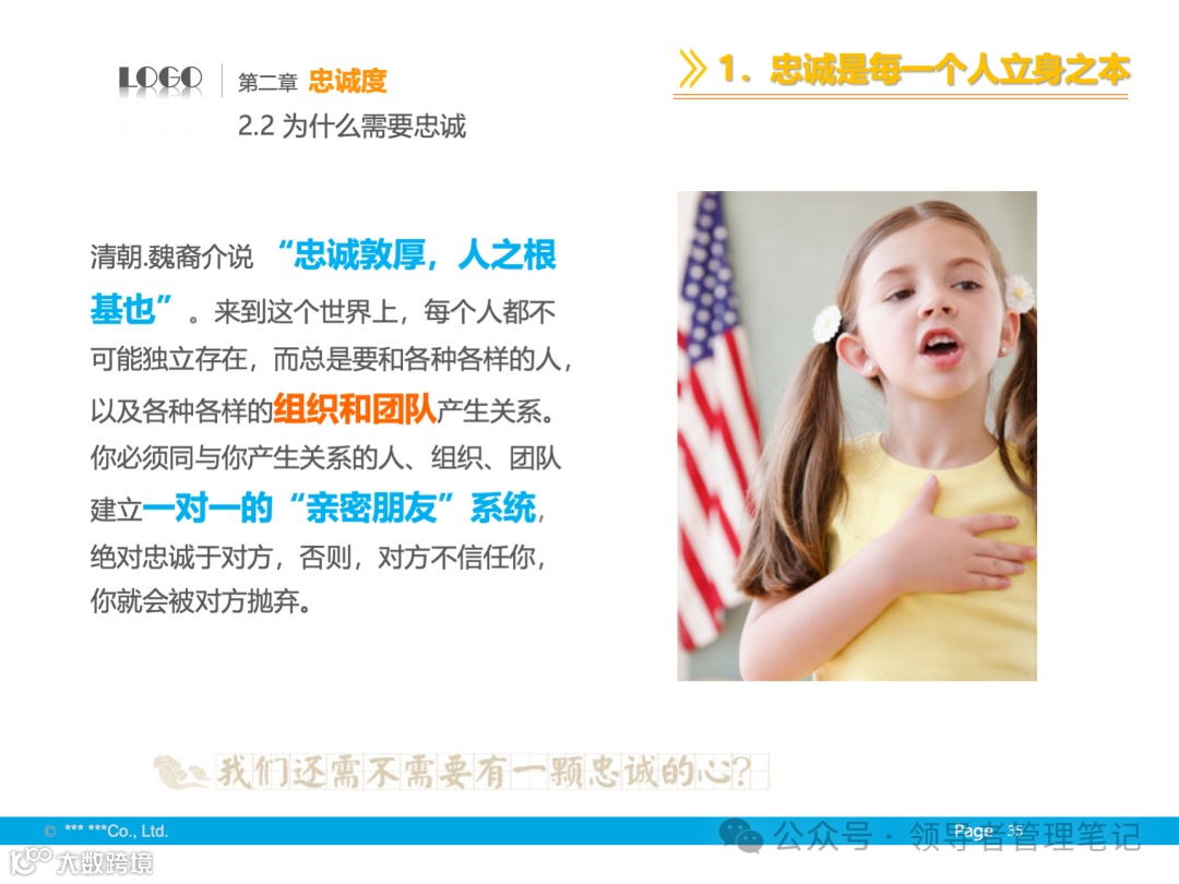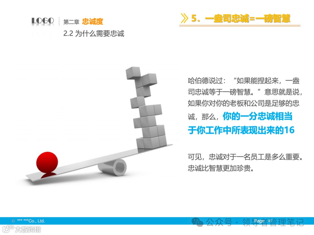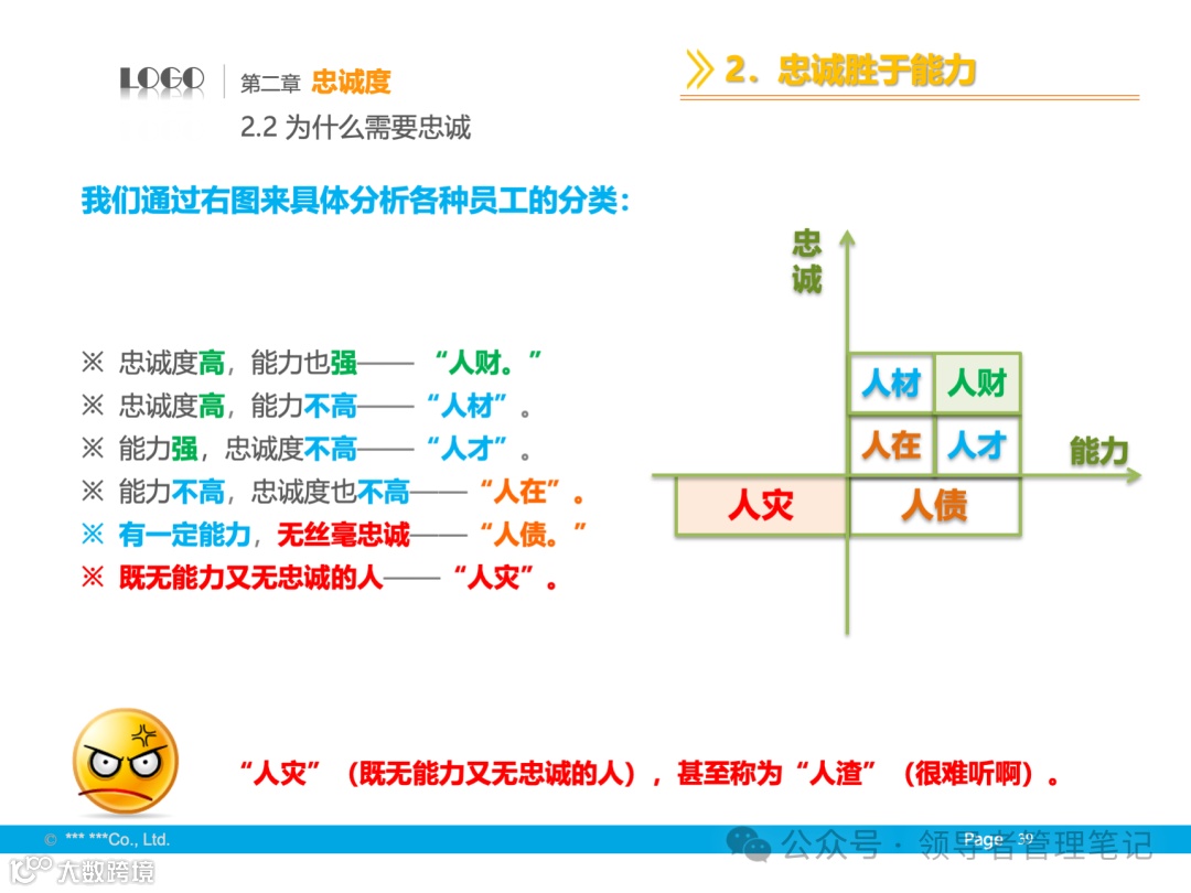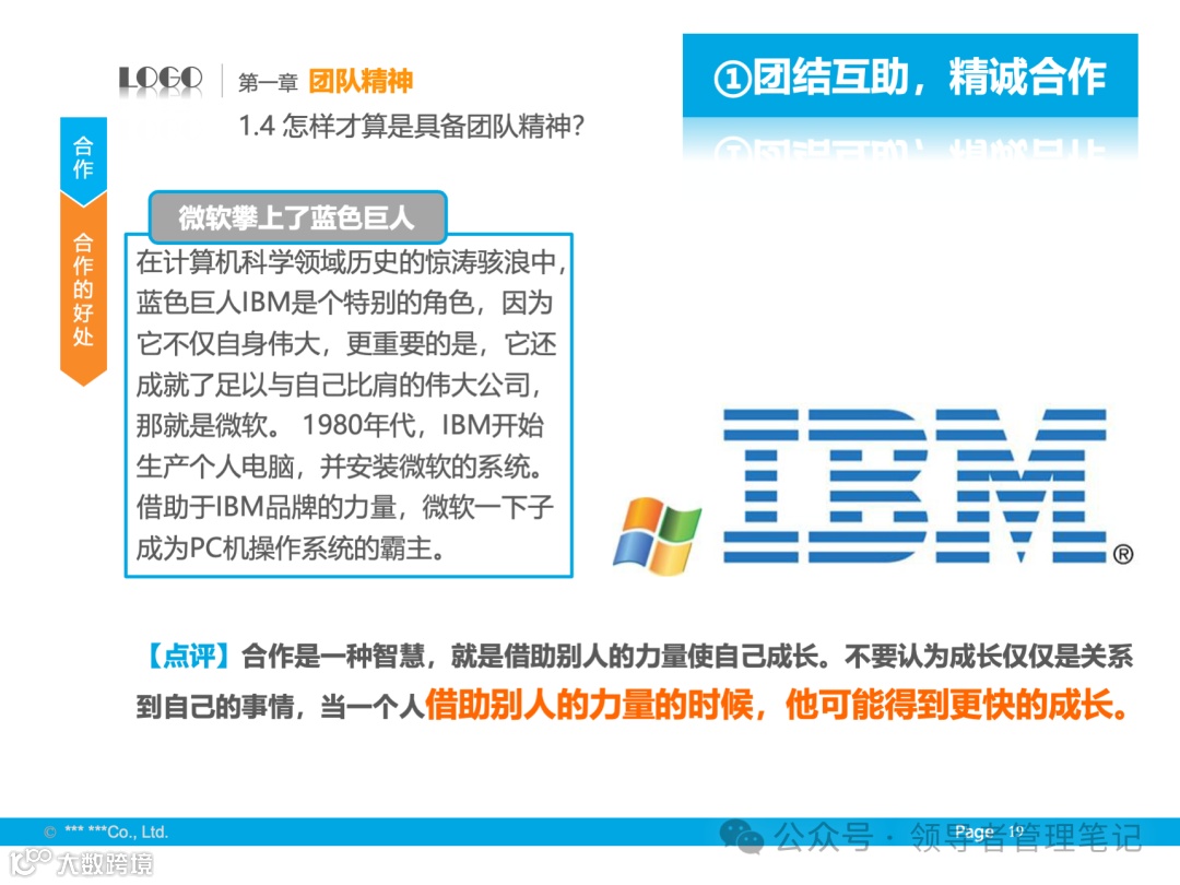 - 基础与境界:尊重个人成就,发挥个性特长,追求全体成员的向心力、凝聚力,保证组织高效运转。