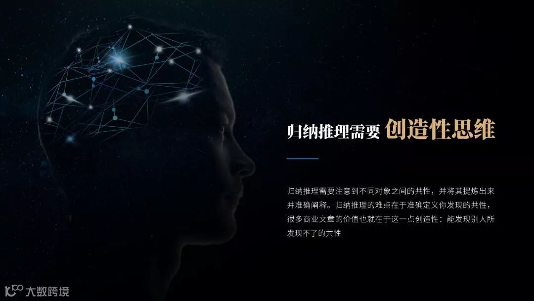 归纳推理需要注意到不同对象之间的共性,并将其提炼出来并准确阐释。归纳推理的难点在于准确定义你发现的共性,很多商业文章的价值也就在于这一点创造性:能发现别人所发现不了的共性。