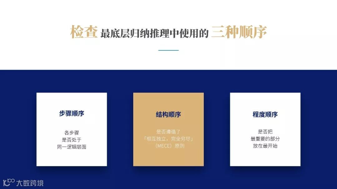 逻辑递进:每一组中的思想必须按照逻辑顺序排列