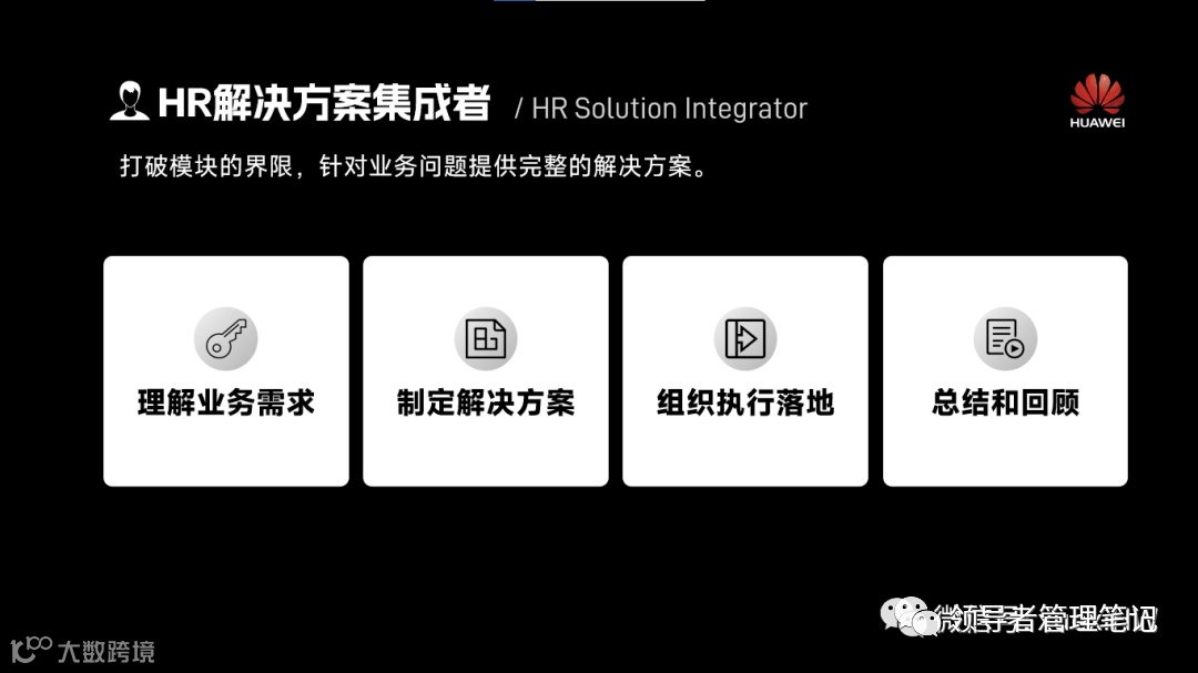 在这个部分HRBP还需要具备复盘教练、数据统计分析的综合能力、流程设计与优化的能力、知识萃取的能力,能够在项目结束之后总结固化经验;为COE在制定政策、流程和方案时提供业务输入,将经验固化到流程中。