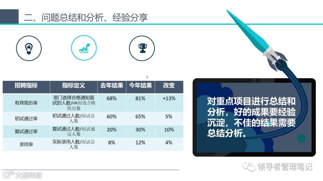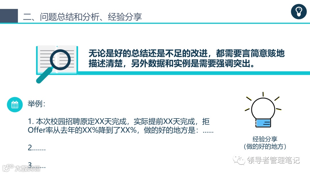 2. **缺乏数据支持**:虽然我们不应该只依赖数据,但如果没有足够的数据支持你的观点或结论,那么你的总结可能会显得不够有力。