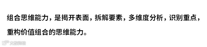 组合创新思维不仅仅只是把各个要素重新排列组合那么简单,它不是撒胡椒面,不是面面俱到,而是抓重点、抓主线、抓主要矛盾,这需要清晰的逻辑分析、严谨的要素拆解、深刻的洞察,面对问题一般是先拆解,再分析轻重缓急,找到关键要素,最后围绕关键要素重新组合。