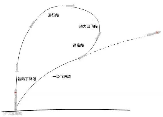 1.三个核心推进器在升空后可飞回着陆点,重复利用;