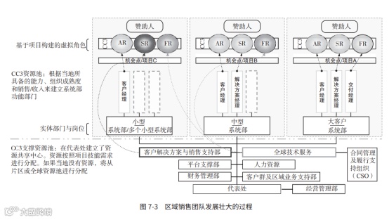 要说明的是,即使是华为,也不会为每个客户都配置铁三角组织。华为有完整的铁三角组织建立与资源配置原则,下面以一个新市场的拓展过程来分析,铁三角组织是如何从无到有、从小到大发展起来的。