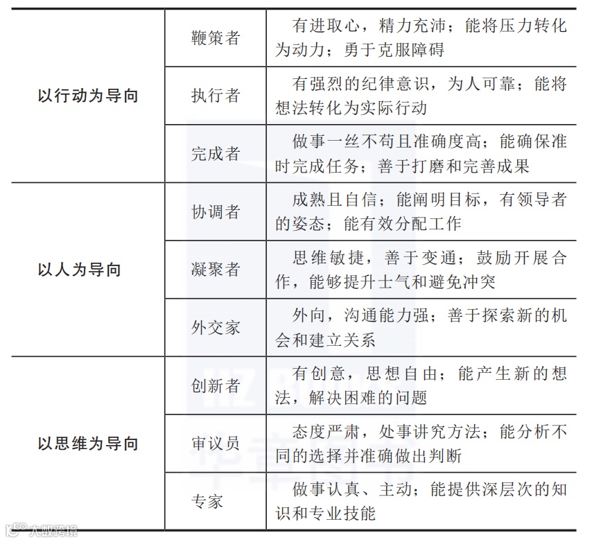 简单地说,梅雷迪思·贝尔宾(Meredith Belbin)博士花费了九年时间研究成功的团队成员,并得出结论:这些人通常扮演九种不同的团队角色。他将这九种角色分为三大类:以行动为导向、以人为导向和以思维为导向,具体如表2所示。