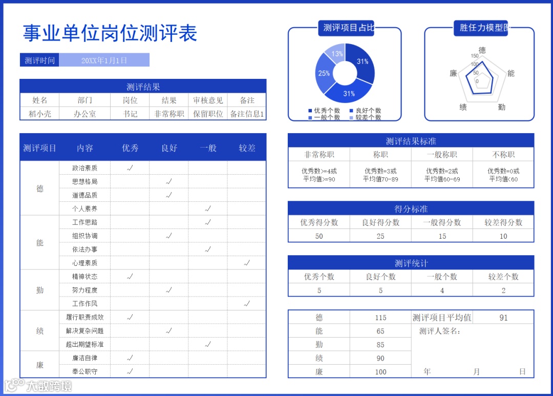 为了帮HR减负,今天小编就给大家整理了一套:《2023通用岗位测评表》最新资料分享给小伙伴们,本套资料内含干部测评表、通用岗位测评统计表、岗位评价测评表等,一起来看下~