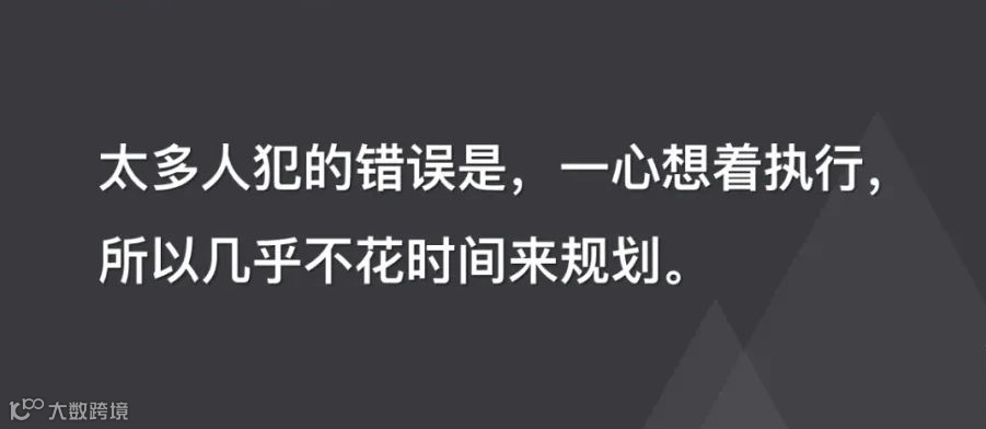 太多人犯的错误是,一心想着执行,所以几乎不花时间来规划。谨记:规划先于行动!