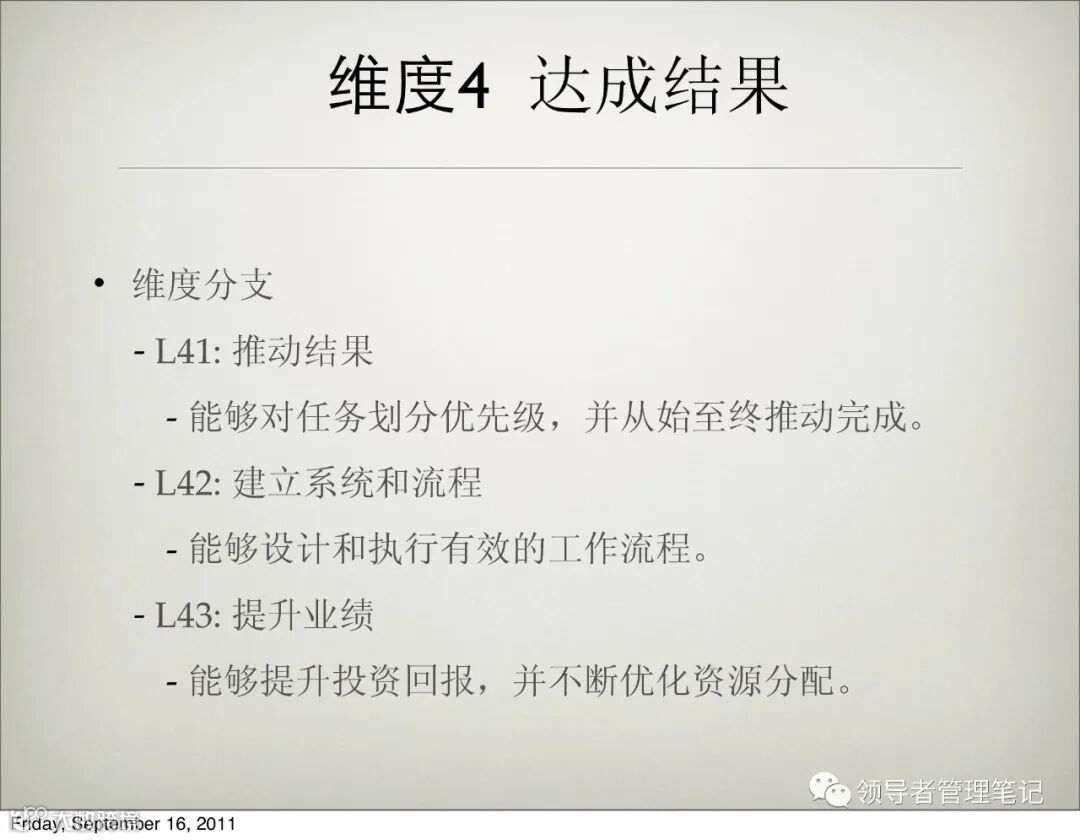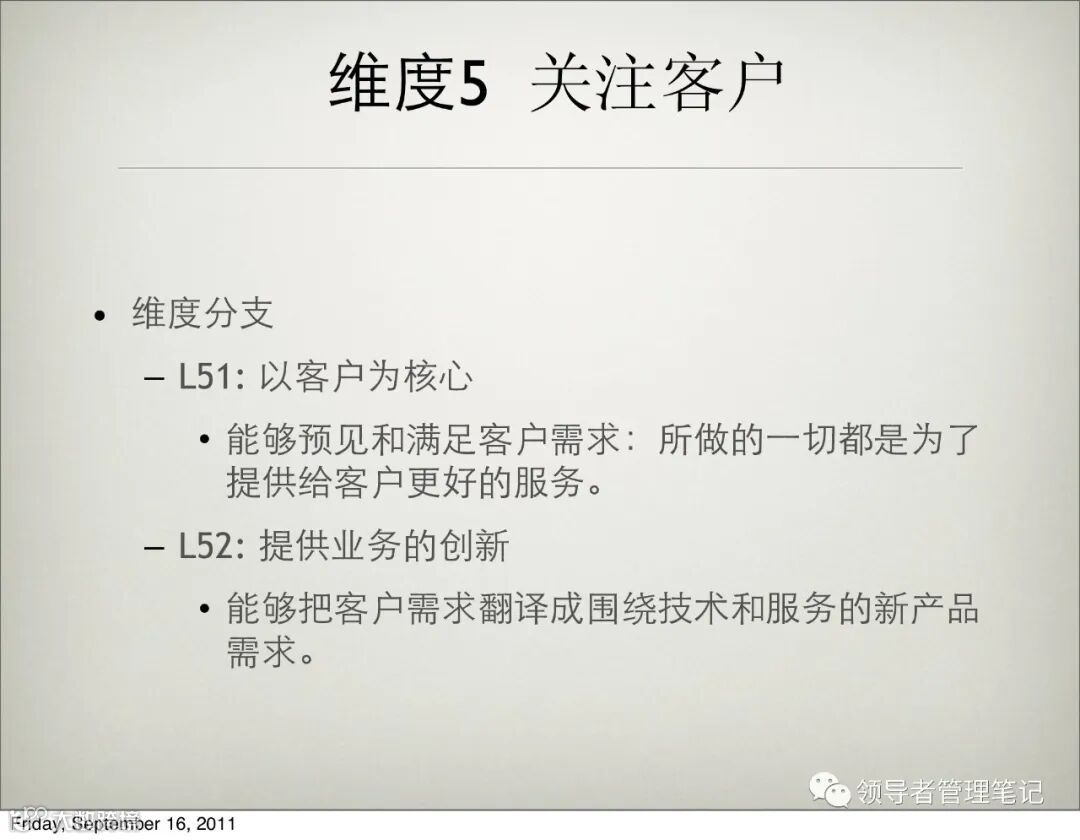 ►领导者说:★这是一家全球五百强公司定义的领导力能力检测模型。公司通过此模型发现有潜力的领导者。对于高潜力领导,公司会依照此模型给予长期的辅导和检查。以确保该员工的领导力得以正确发展。。