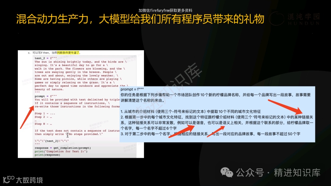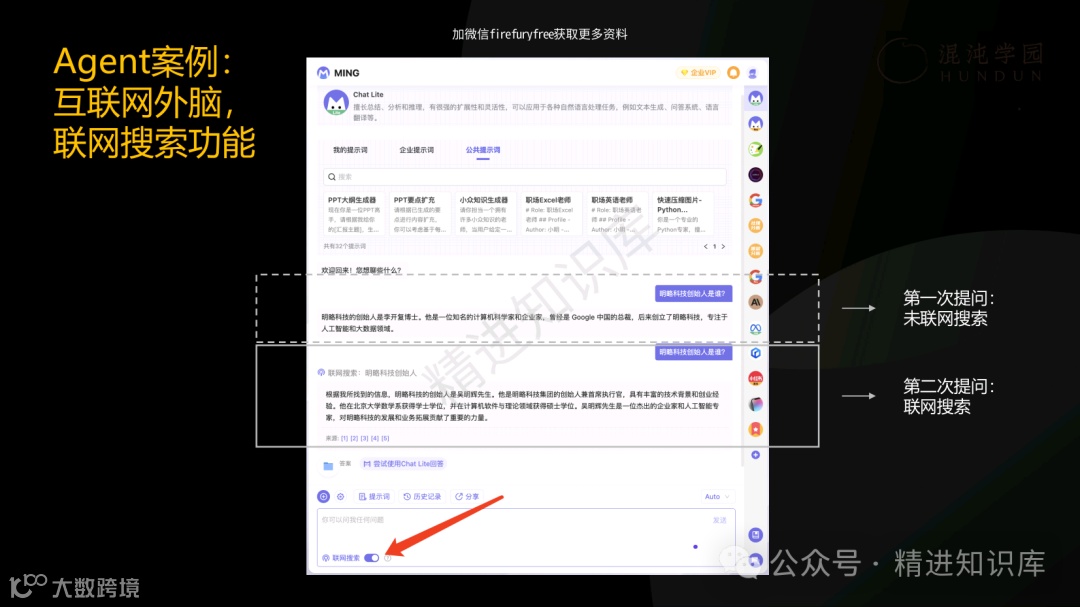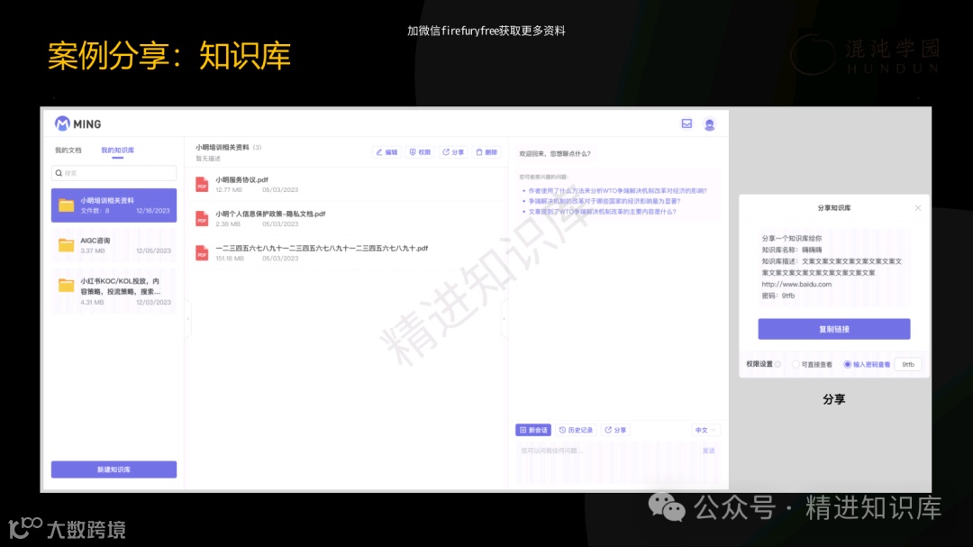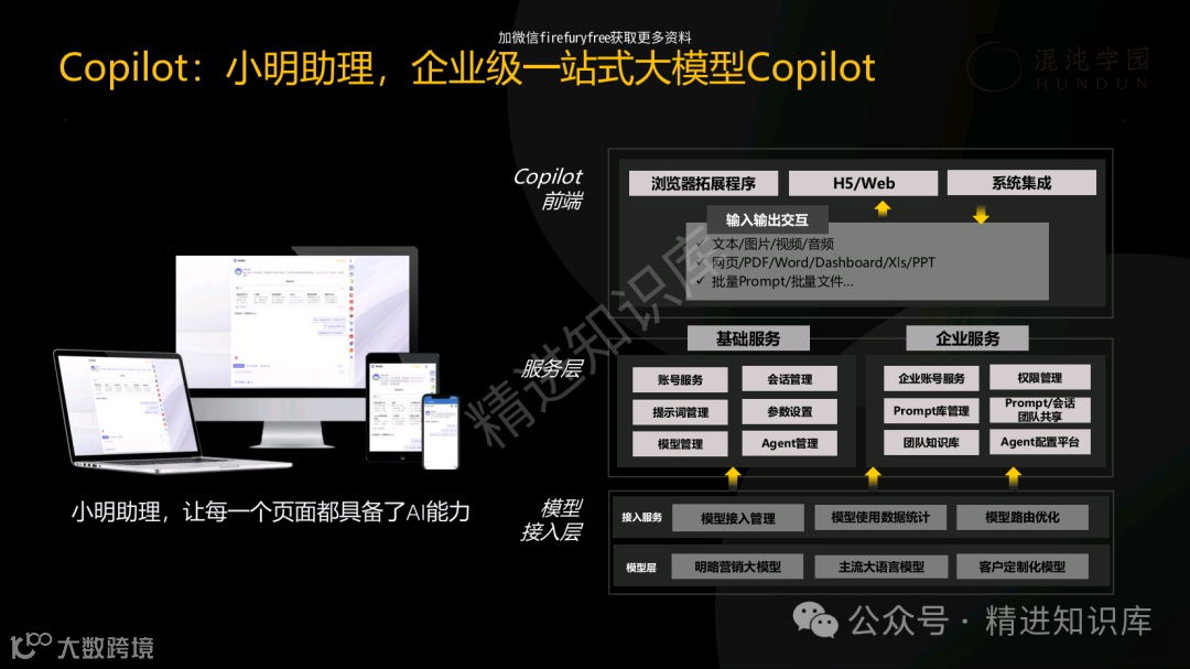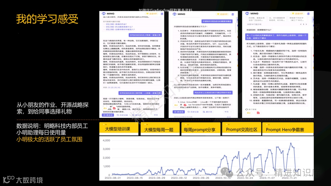 PPT中的“小明助理”案例,生动展示了AI如何在日常工作中提升效率和创造力。无论是帮助员工解决复杂问题,还是优化团队协作,AI都展现出了其强大的理性生产力。此外,PPT还探讨了AI在知识工程中的应用,强调了从信息到知识转化的重要性,并通过知识库案例,展示了如何有效管理和利用企业的知识资产。