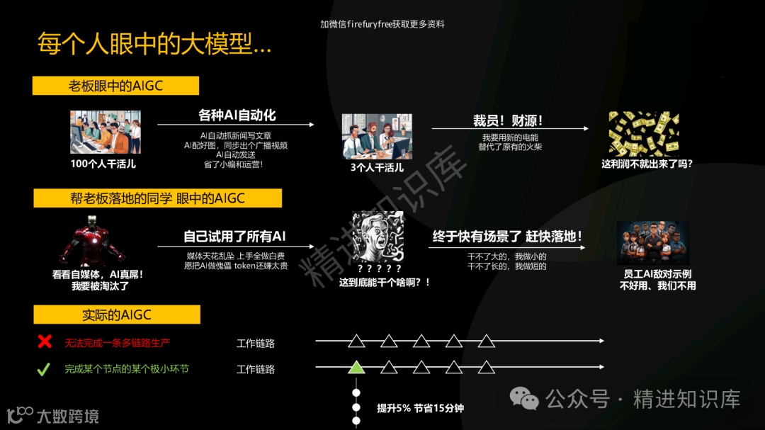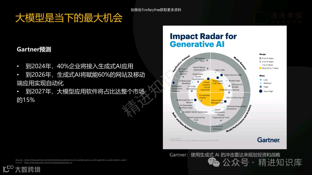 这个PPT深入浅出地阐述了AI大模型的必要性,揭示了先发者和后发者在市场上的不同机遇,并提供了实际案例,如秒针系统和Bloomberg,展示了早期采用AI技术的企业如何获得市场领先地位。Gartner的预测数据更是为企业描绘了一个清晰的AI未来蓝图,指出到2024年,40%的企业将接入生成式AI应用,到2027年,大模型应用软件将占据市场的15%。