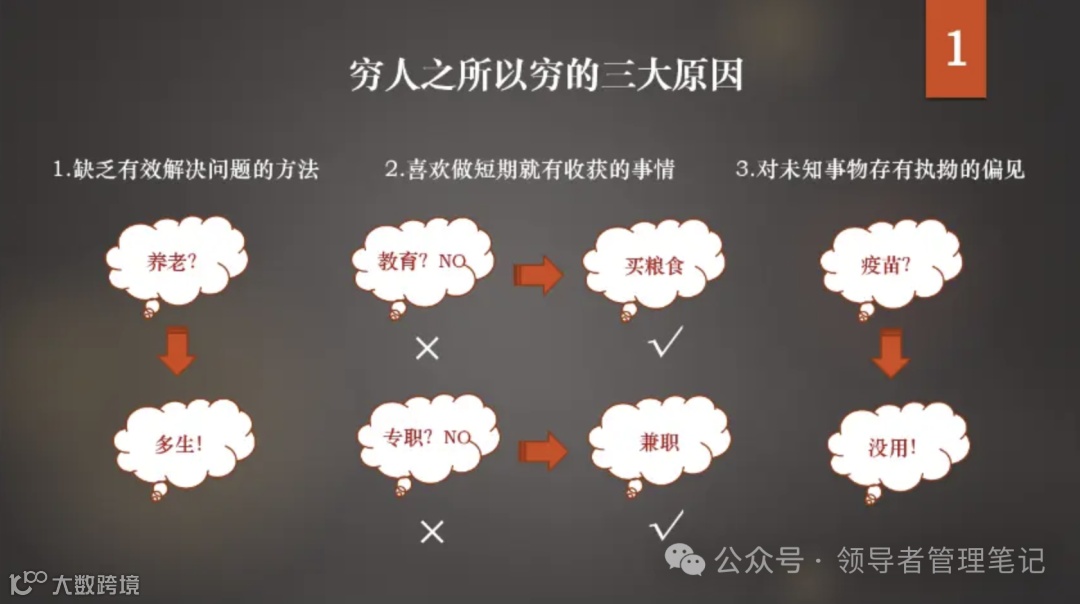 两位学者通过研究,得到的发现之一是,穷人担负着生活中的多种责任,他们只能关注眼前的生活,无法为长远目标做计划,从而陷入贫穷的死循环。