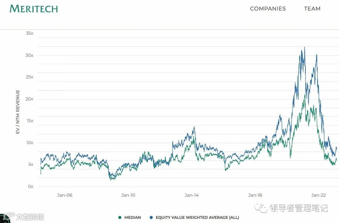 初创企业ARR乘数的变化情况。 来源: Meritech & Elad Gil