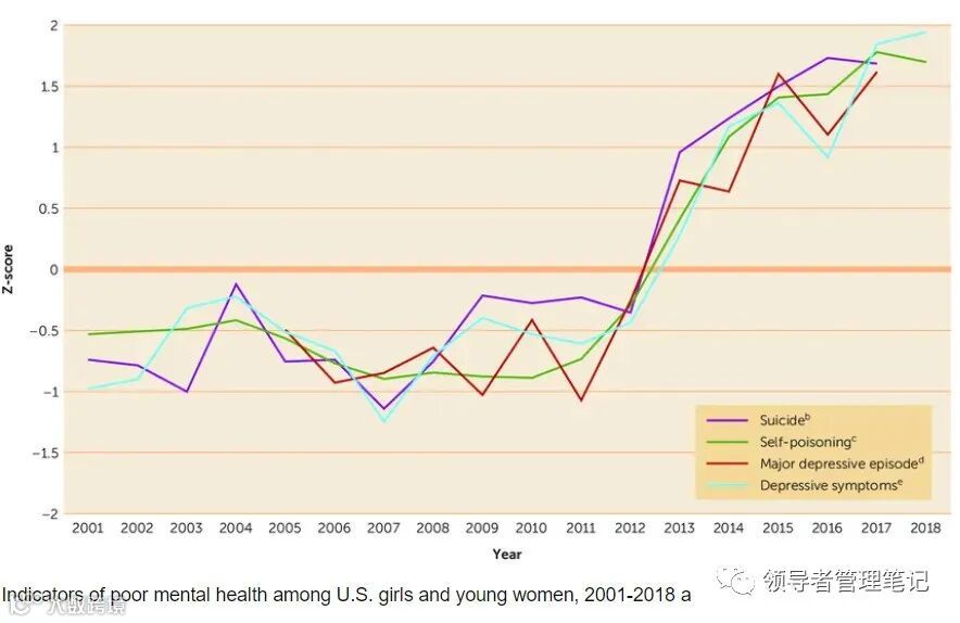 近十年美国女孩的心理健康状况恶化,来源:Twenge (2020)