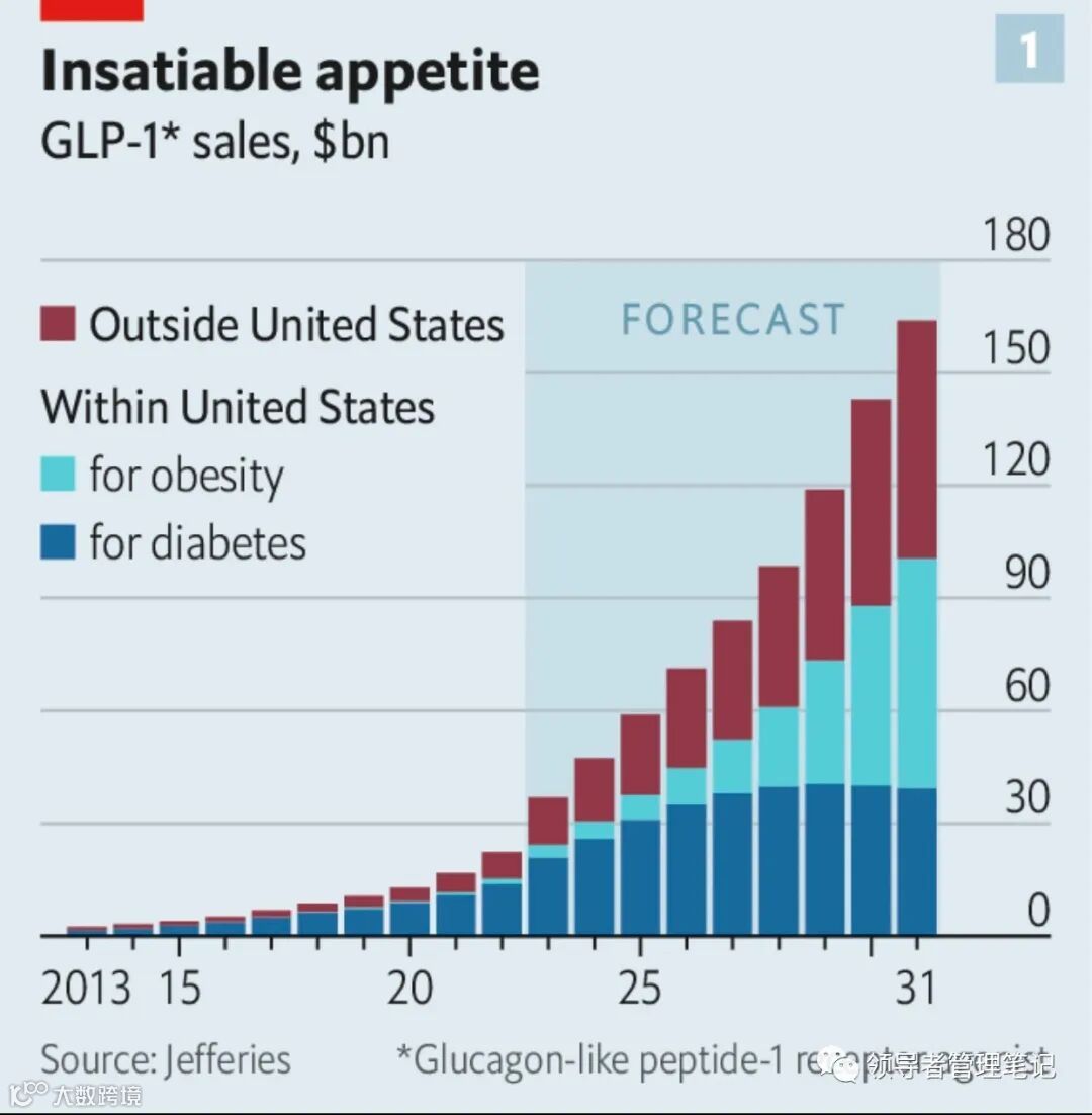 《经济学人》估计,到 2031 年,GLP-1 药物的市场规模将超过 1500亿美元。从长远来看,这将与所有用于治疗癌症的药物的市场规模相当( 2021 年为 1850亿 美元)。我预计这回给野心勃勃的企业家提供各种机会——制药公司肯定是赢家,但也会有“Ozempic 网红”以及“Wegovy 教练”的生态体系,以及获取减肥药的在线管理市场。