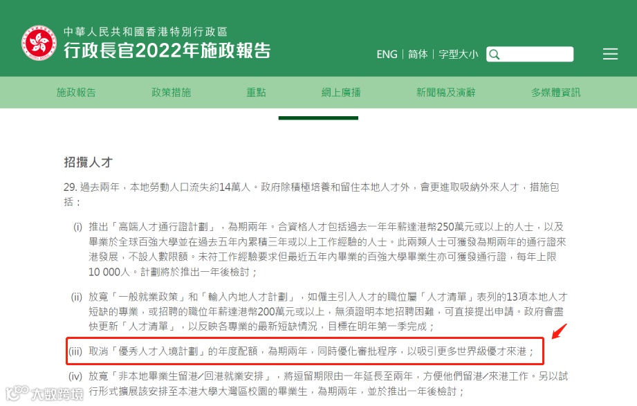 而就在前段时间,香港入境处批准了史无前例的707名申请者获得名额。并且配额也在逐年不断翻倍,从最初的每年1000个名额增至2022年的4000个。但面对大量的申请人,4000个配额仍然是杯水车薪。然而就在去年10月19日香港特首最新的《施政报告》中提出,取消优才计划配额,进入两年“无限”申请时代!