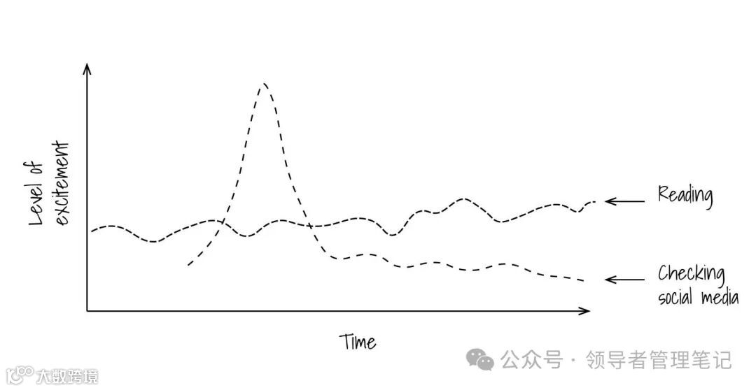 虽然阅读可以带来满足感。但与其他容易获得的活动(如观看短视频、听音乐、吃东西)相比,拿着一本书,看着书页上的文字,这种行为没有那么令人兴奋,它往往需要更长时间的投入。如果你在阅读过程中观察自己的“情绪晴雨表”,你会看到一条近乎平缓的线。