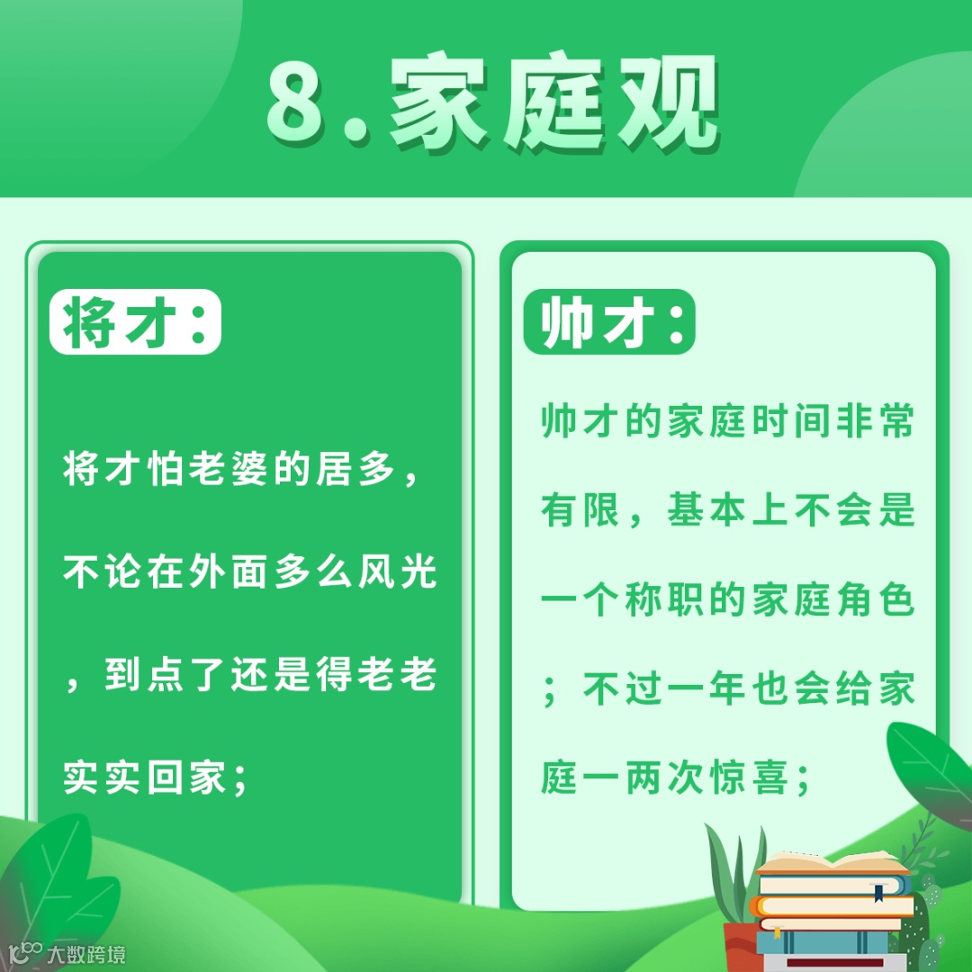 帅才:帅才的家庭时间非常有限,基本上不会是一个称职的家庭角色;不过一年也会给家庭一两次惊喜;