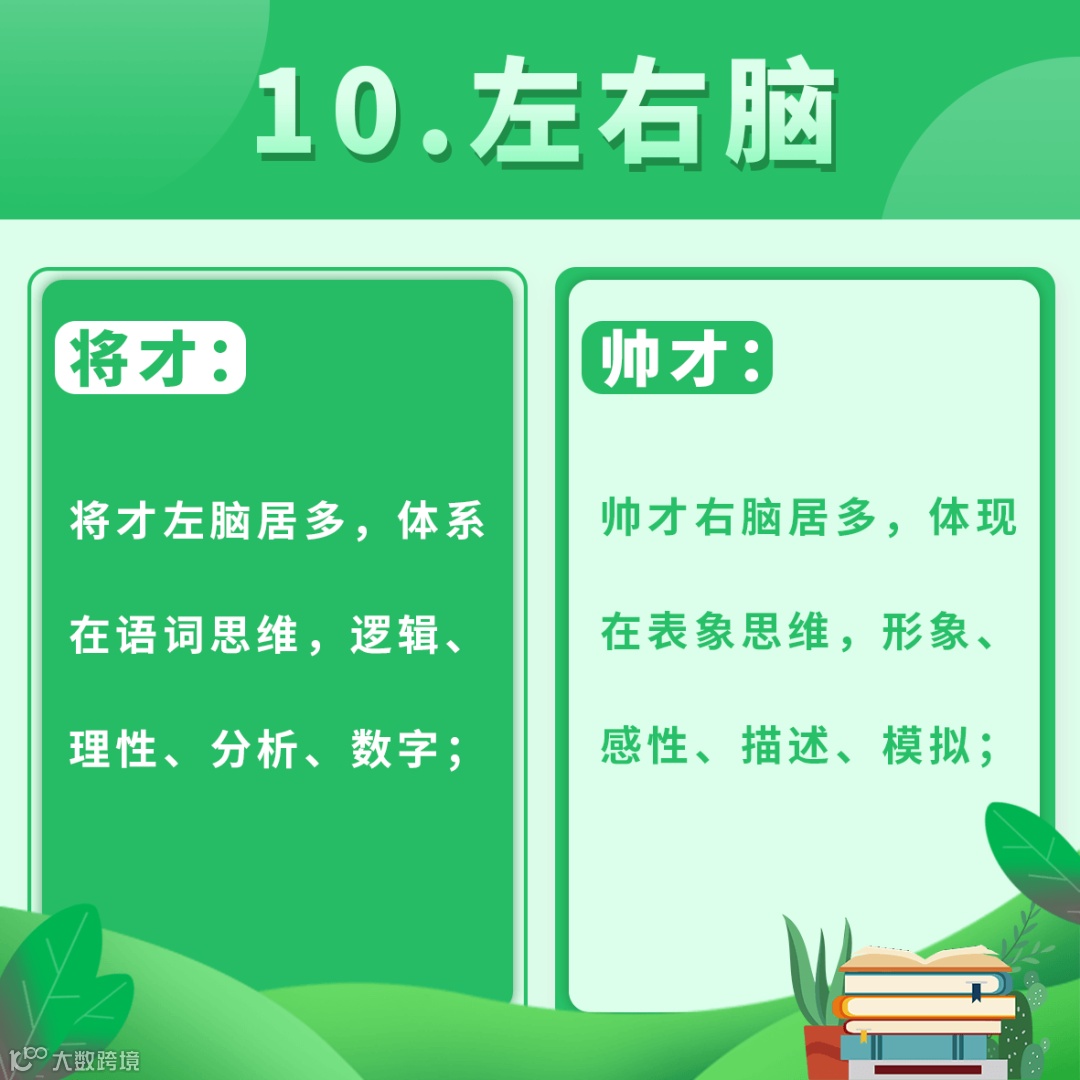 将才:将才左脑居多,体系在语词思维,逻辑、理性、分析、数字;