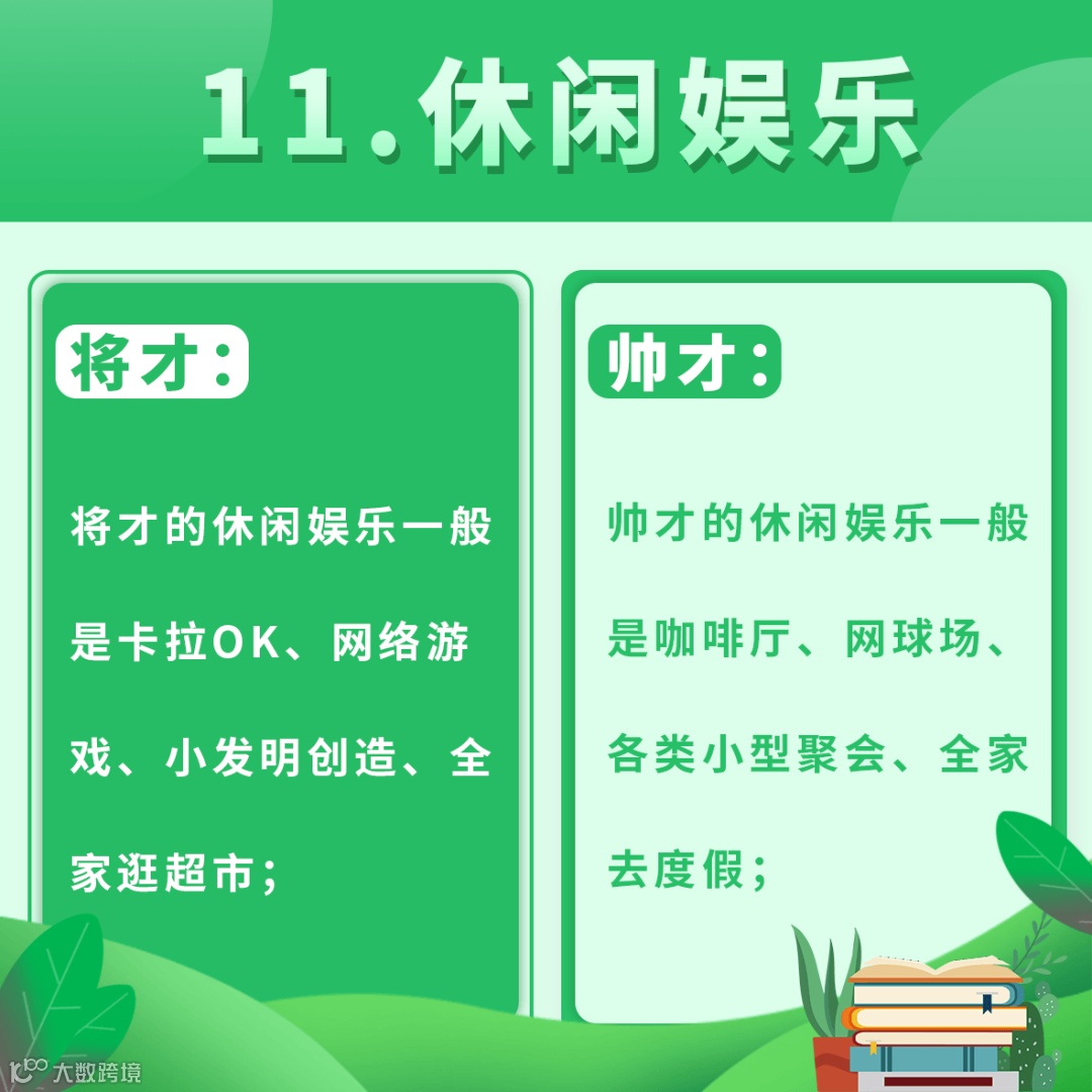 帅才:帅才的休闲娱乐一般是咖啡厅、网球场、各类小型聚会、全家去度假;
