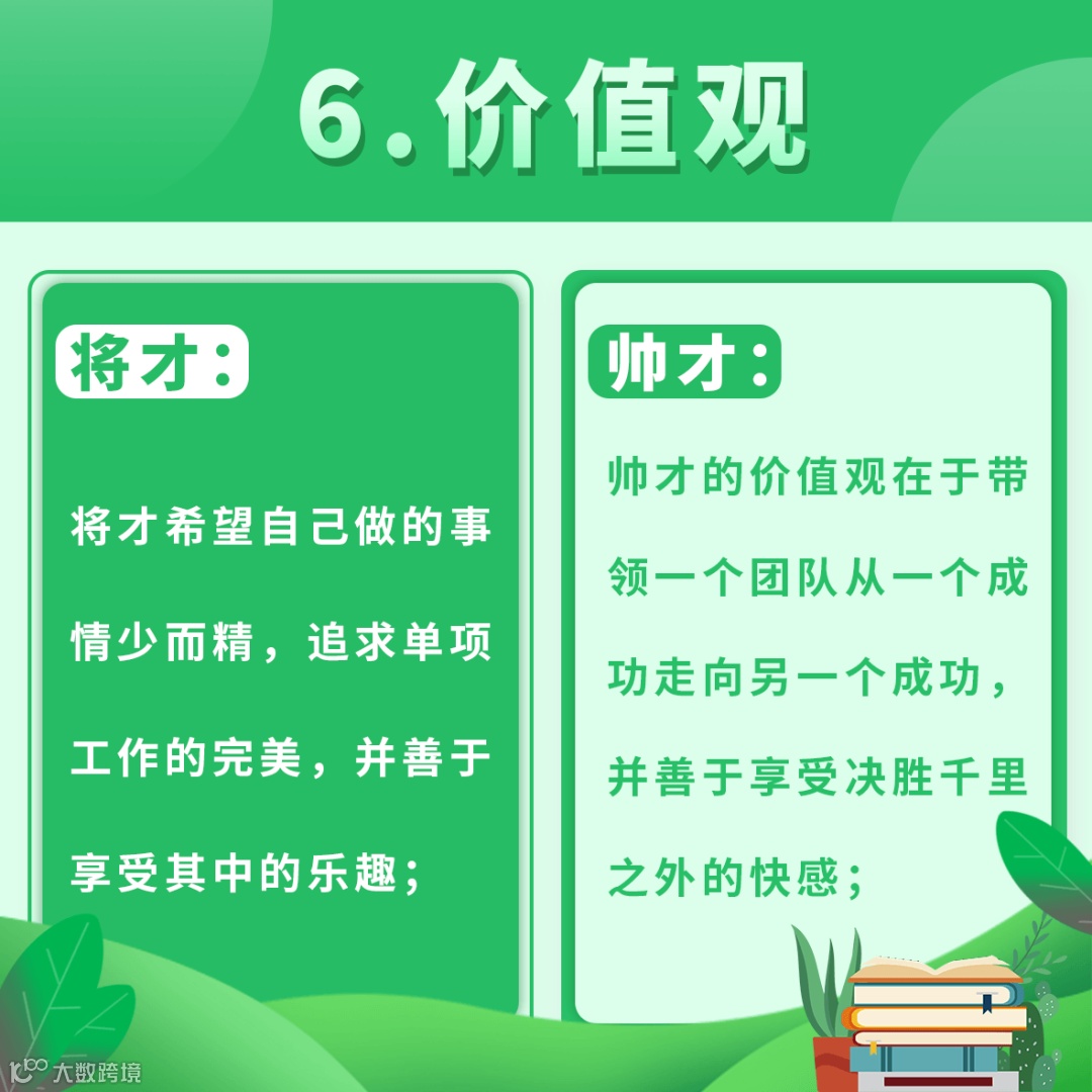 帅才:帅才的价值观在于带领一个团队从一个成功走向另一个成功,并善于享受决胜千里之外的快感;