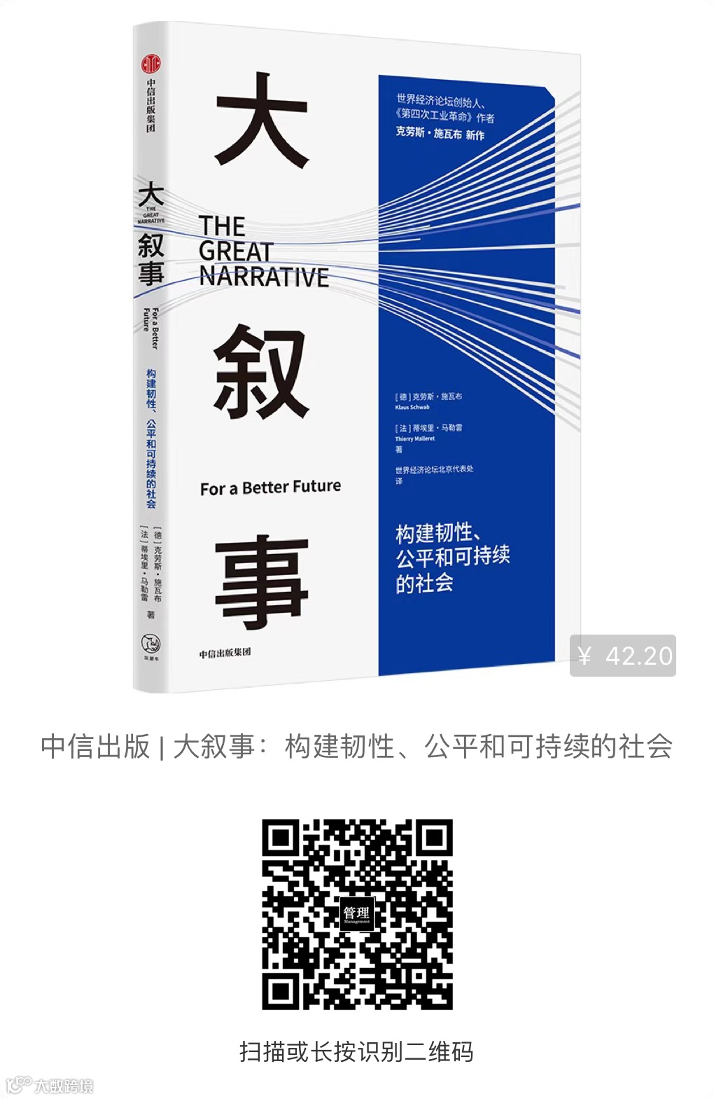 世界经济论坛创始人施瓦布新书《大叙事》中,提供了一系列相互关联的叙事,阐明了即将到来的变化和人类的对策。