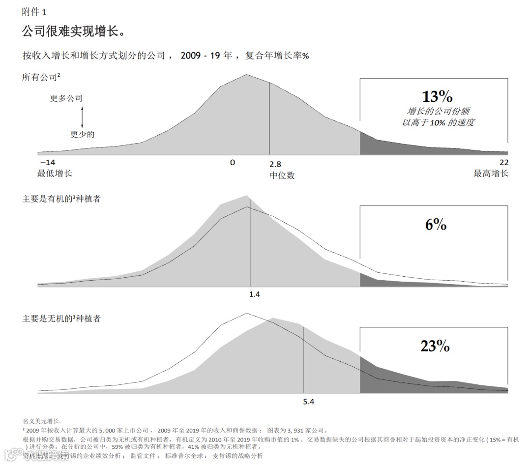 研究结果表明,在 COVID - 19 之前的十年中,一个典型公司以中等速度增长是 2.8% ,只有八分之一的公司年增长率超过 10% (见附件 1) 。
