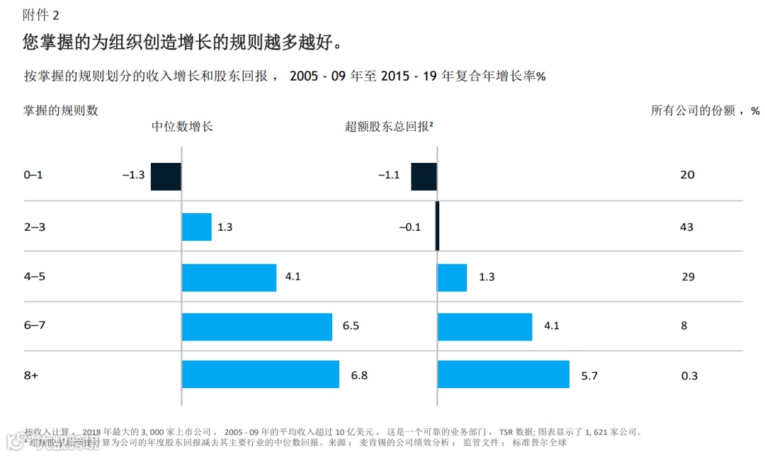 在我们样本公司中,不到一半的公司在十条规则中能掌握超过三条,只有 8% 的公司掌握了超过五条(图表 2 )。