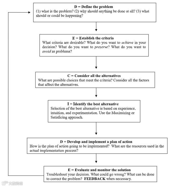 DECIDE 框架最初是为医疗保健管理人员设计的,以便他们在日益复杂的工作环境中做出有效的决策,在这种环境中,他们需要处理大量的医疗、伦理、经济、法律、技术和组织方面的问题。这种方法非常接近科学方法,但又具有实操性,可以让我们在做决定之前考虑到更复杂的解决方案。