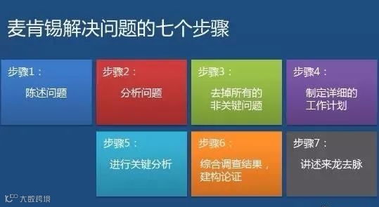 回复“麦肯锡”获取麦肯锡七步成诗问题解决法完整课件。