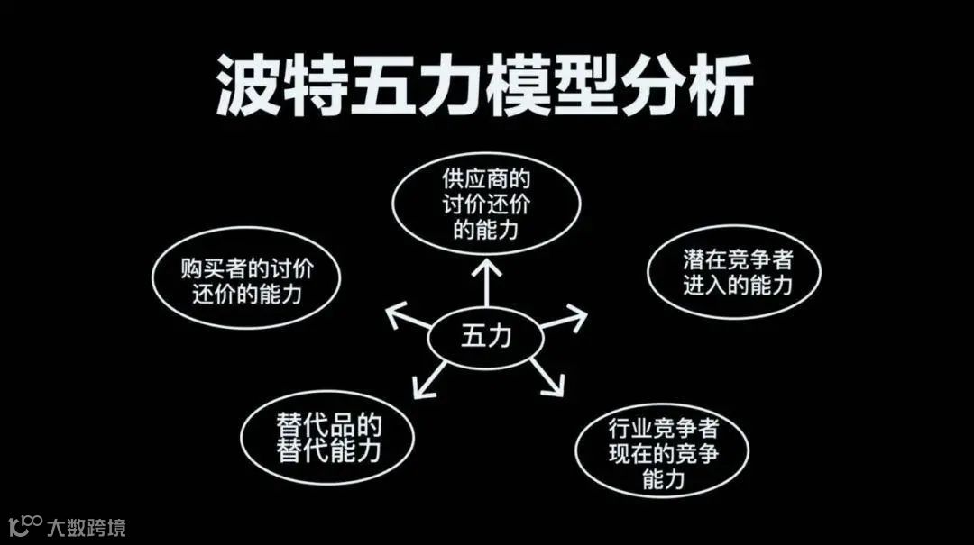 五种力量分别为同行业内现有竞争者的竞争能力、潜在竞争者进入的能力、替代品的替代能力、供应商的讨价还价能力与购买者的议价能力。