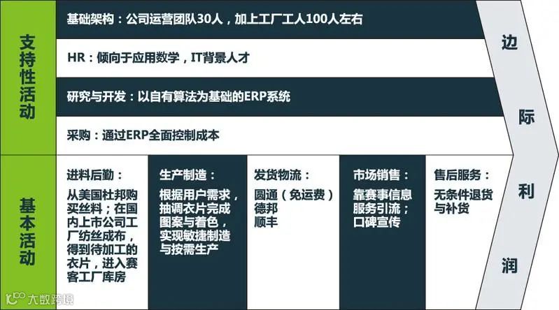 基本活动涉及企业生产、销售、进向物流、去向物流、售后服务;支持性活动涉及人事、财务、计划、研究与开发、采购等。