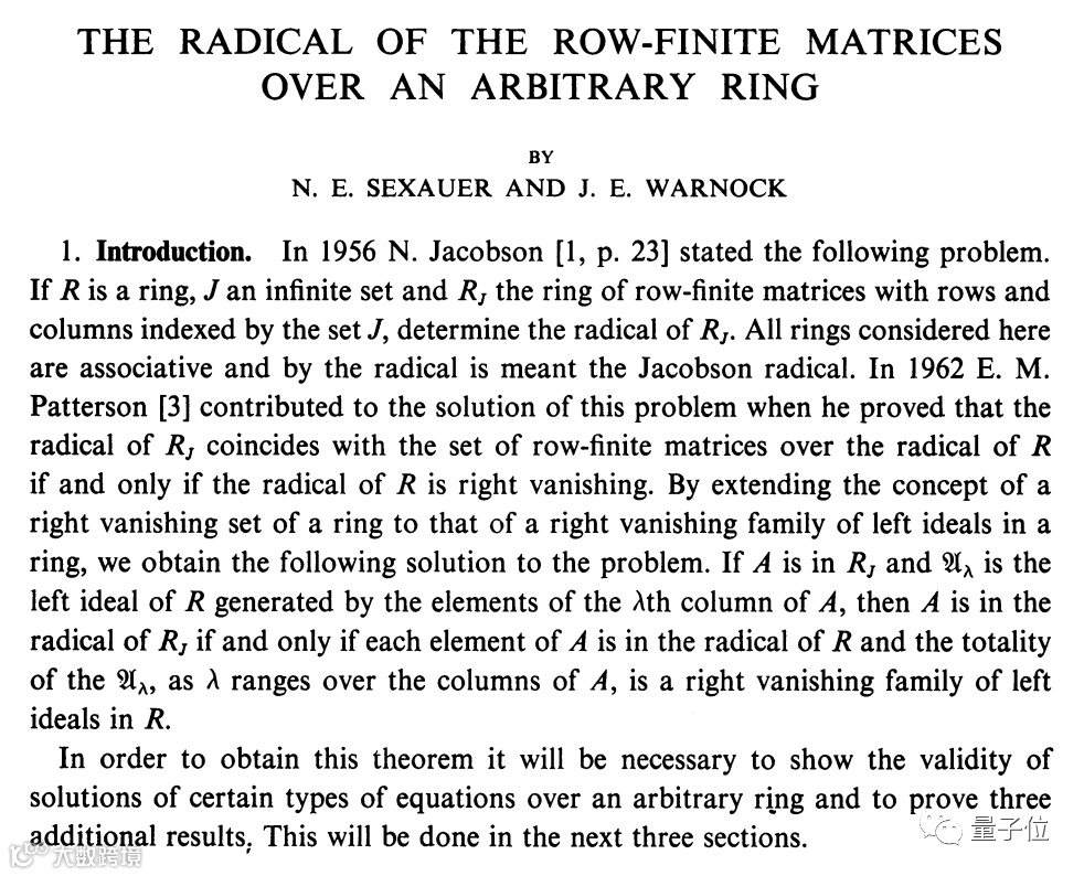 1964年,他用一篇仅9页的硕士论文证明了行有限矩阵的Jacobson根式定理。