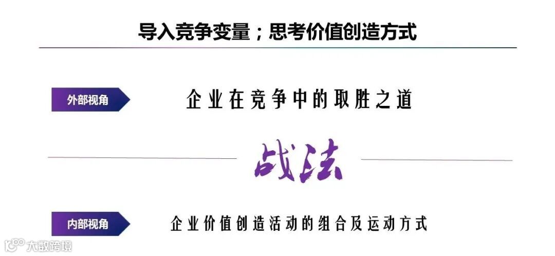 接下来这个词很重要,叫战法。我们需要导入竞争维度。任何一个企业为客户创造价值的时候,实际上是在竞争环境中实现的。