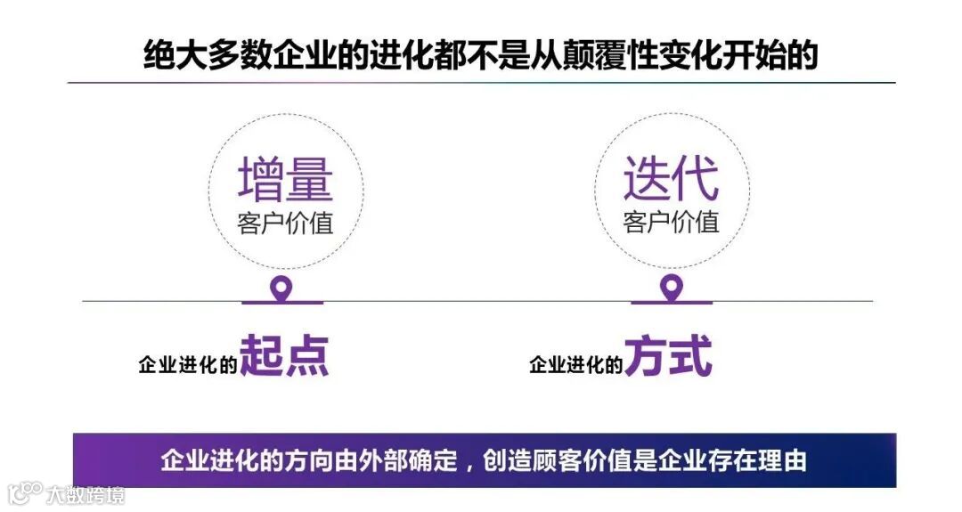 以上边所列举的顾客价值增量为起点,不断实现顾客价值迭代,这是进化的基本方式,也就是说企业在循环往复中实现进化。上面有关进化的思考,符合德鲁克的思想,即进化的方向由外部顾客需求决定。