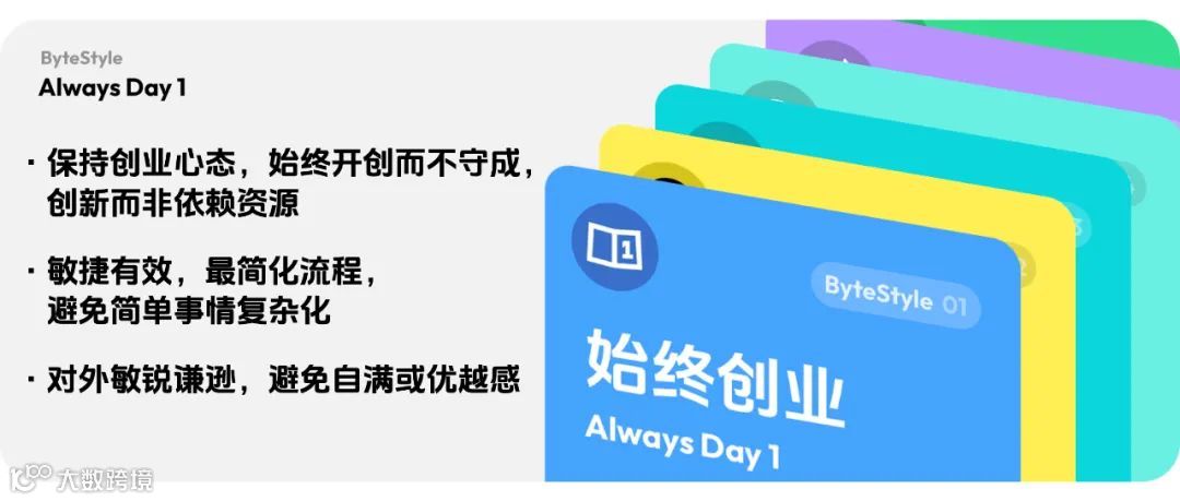 △字节范中对于“始终创业”的具体释义