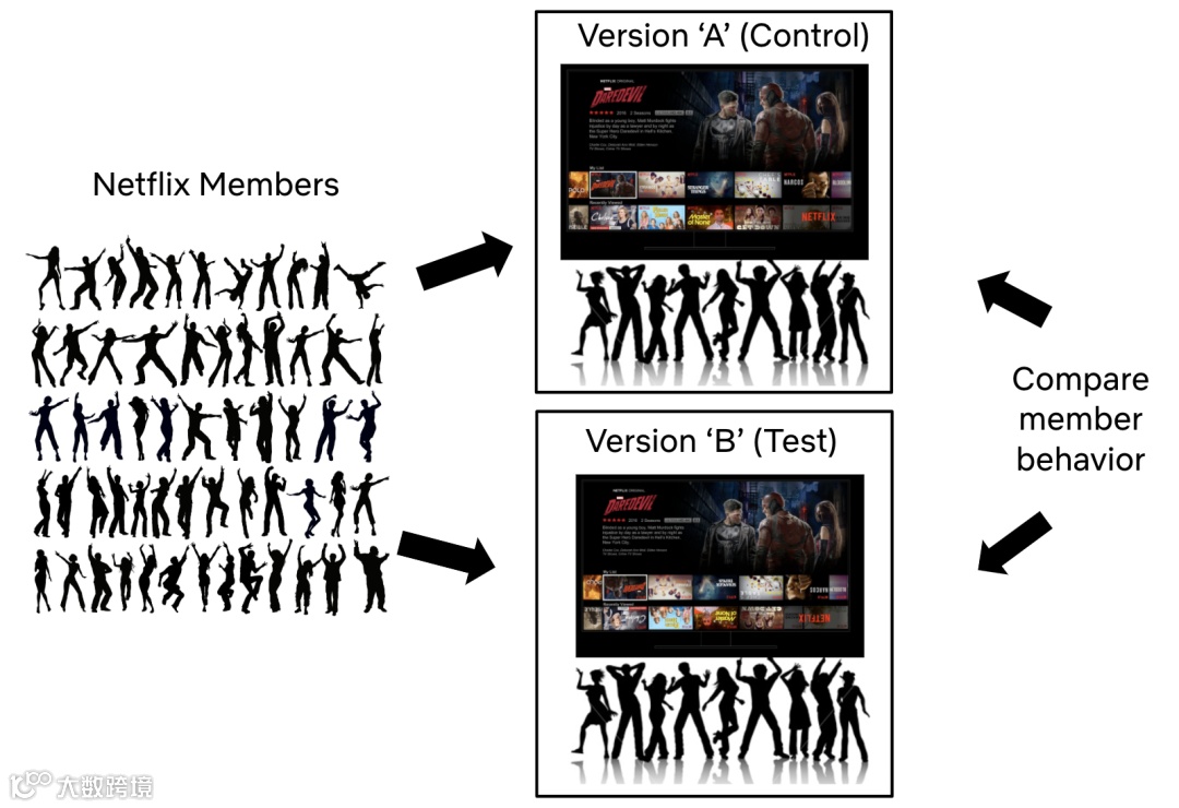 在 Netflix这里,在决定如何改善我们向会员提供的体验方面,我们相信还有更好的方式:我们采用 A/B 测试。实验的规模扩大了。实验不是由一小群高管或专家参与决策,而是让我们所有的会员都有机会参与,通过自己的行动就如何改善 Netflix 带给他们的体验进行投票。