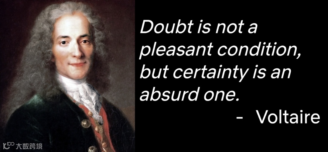 图 1:心存怀疑虽是一种不愉快的体验,但至少不像深信不疑那般荒唐——伏尔泰。