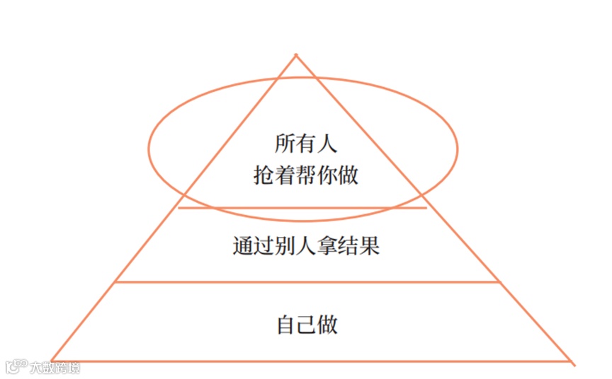 对于很多中小企老板,学会通过别人拿结果,这是一个比较难过的关。下图展示了领袖力的三个层次:自己做,通过别人拿结果,所有人抢着帮你做。领袖力在公司起的最好的作用就是第三个层次。