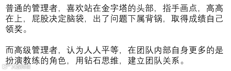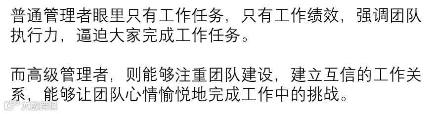 ►领导者说:★有很多管理者在业务能力上很强,但对管理的理解、团队的凝聚、人员的赋能等,还有不小的差距。