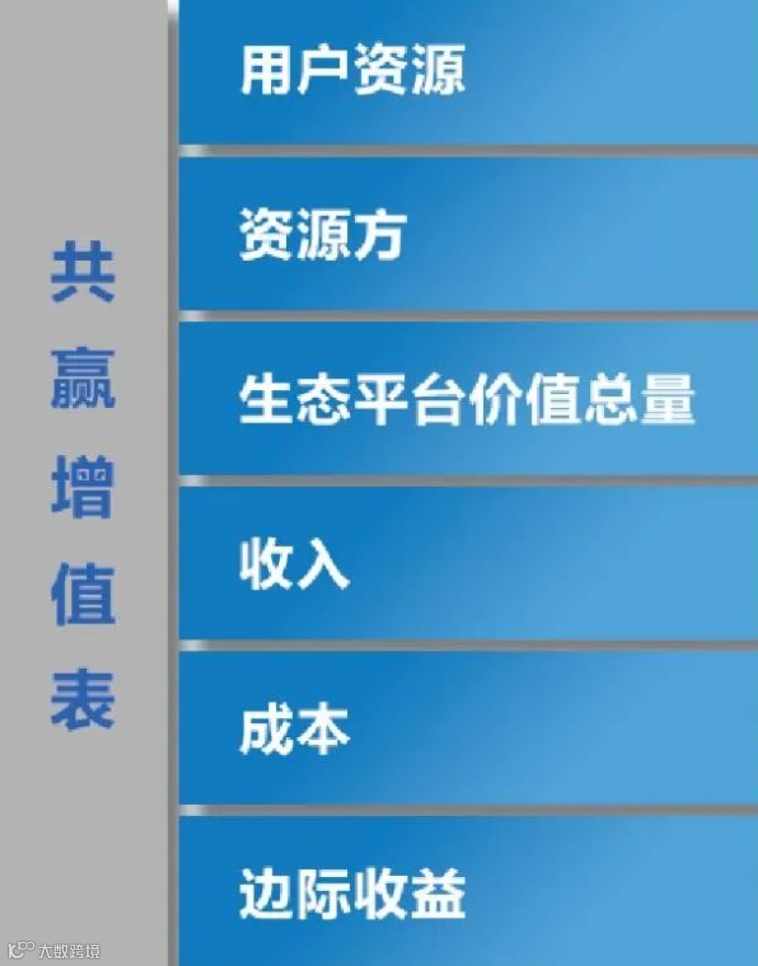 零摩擦分享价值激发员工积极性,再进入更高目标的零距离创造价值,达成生态价值的无限循环。无限循环的生态价值如何管理?传统财务的三张报表已不能满足,海尔于是创造了第四张表——共赢增值表。共赢增值表有六个要素,前五个要素都指向用户价值和生态价值。第六项非常重要,它是价值循环的结果:边际收益递增。产品经济和产品价值只有边际收益递减,只有生态价值才会呈现边际收益递增。