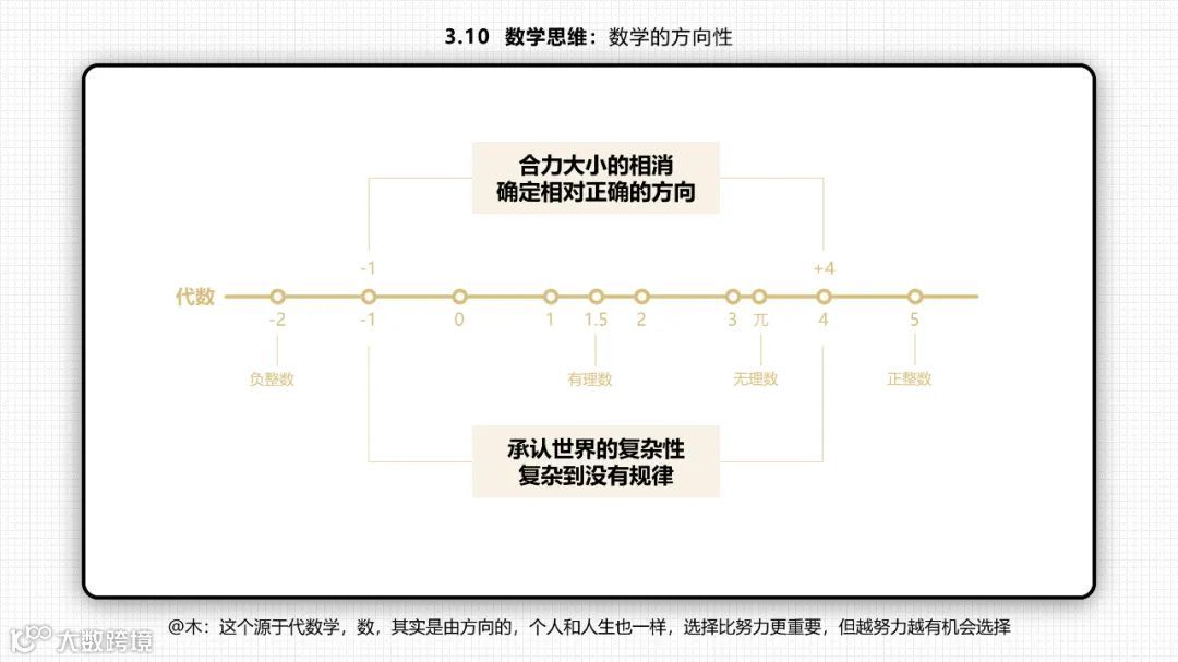 @木:这个源于代数学,数,其实是由方向的,个人和人生也一样,选择比努力更重要,但越努力越有机会选择