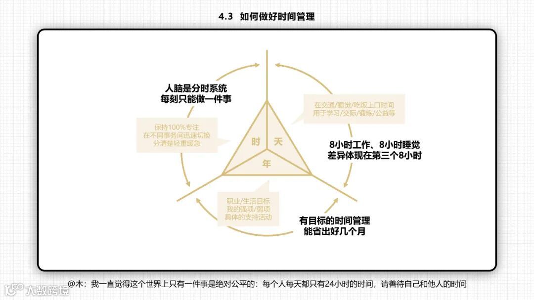 @木:我一直觉得这个世界上只有一件事是绝对公平的:每个人每天都只有24小时的时间,请善待自己和他人的时间
