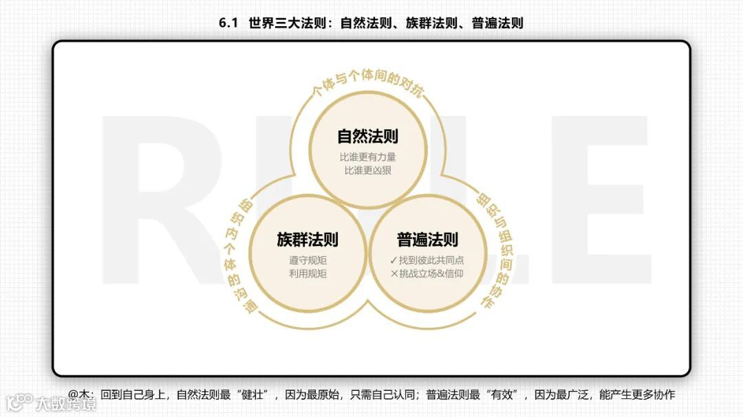 @木:回到自己身上,自然法则最“健壮”,因为最原始,只需自己认同;普遍法则最“有效”,因为最广泛,能产生更多协作