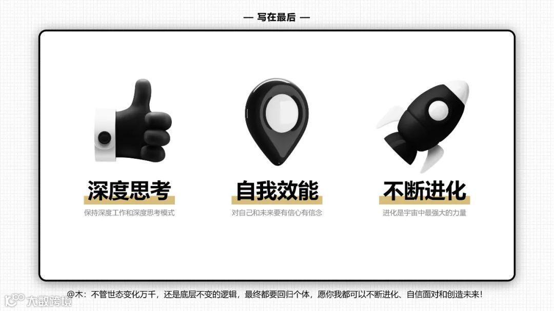 @木:不管世态变化万千,还是底层不变的逻辑,最终都要回归个体,愿你我都可以不断进化、自信面对和创造未来!