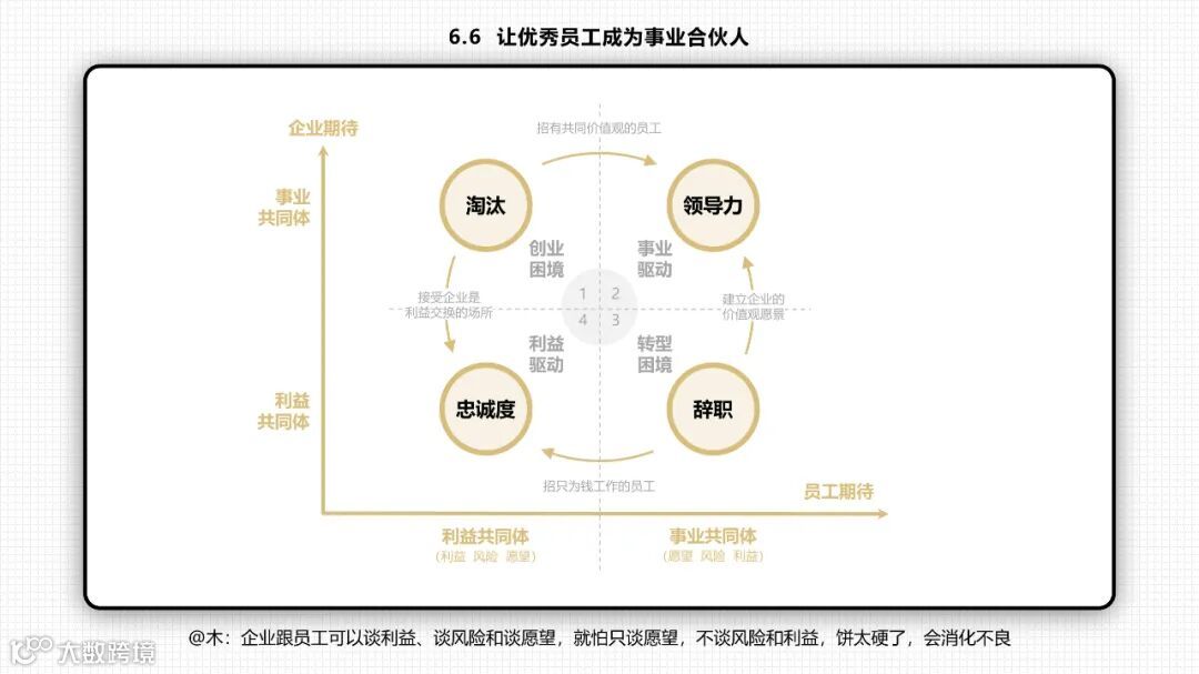 @木:企业跟员工可以谈利益、谈风险和谈愿望,就怕只谈愿望,不谈风险和利益,饼太硬了,会消化不良